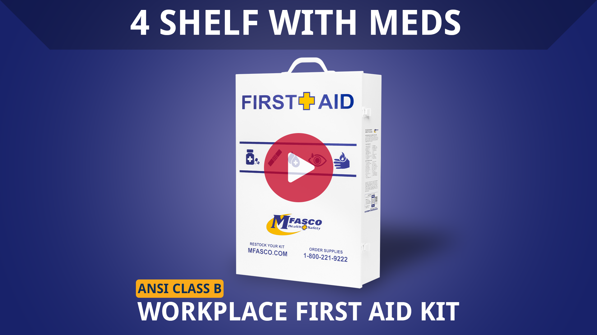 Comfortable Carry HandleThis First Aid Kit includes a very comfortable metal handle that can be used to carry the cabinet. They are designed to fold down and can be easily sanitized when cleaning the cabinet. | Designed to be RestockedMFASCO Workplace First Aid Kits are designed to be easily restocked or refilled. Supplies can be easily inspected for usage and replaced as needed. | Door Pouch OrganizerThe door pouch system holds many of the small individual items used in a first aid kit, keeping them clean, clearly visible, organized and, ready to use. | Long Lasting Quality Metal BoxBuilt for long life, this quality metal box is painted white and will keep your first aid supplies safe and secure for many years of service. They are easy to sanitize & maintain. |