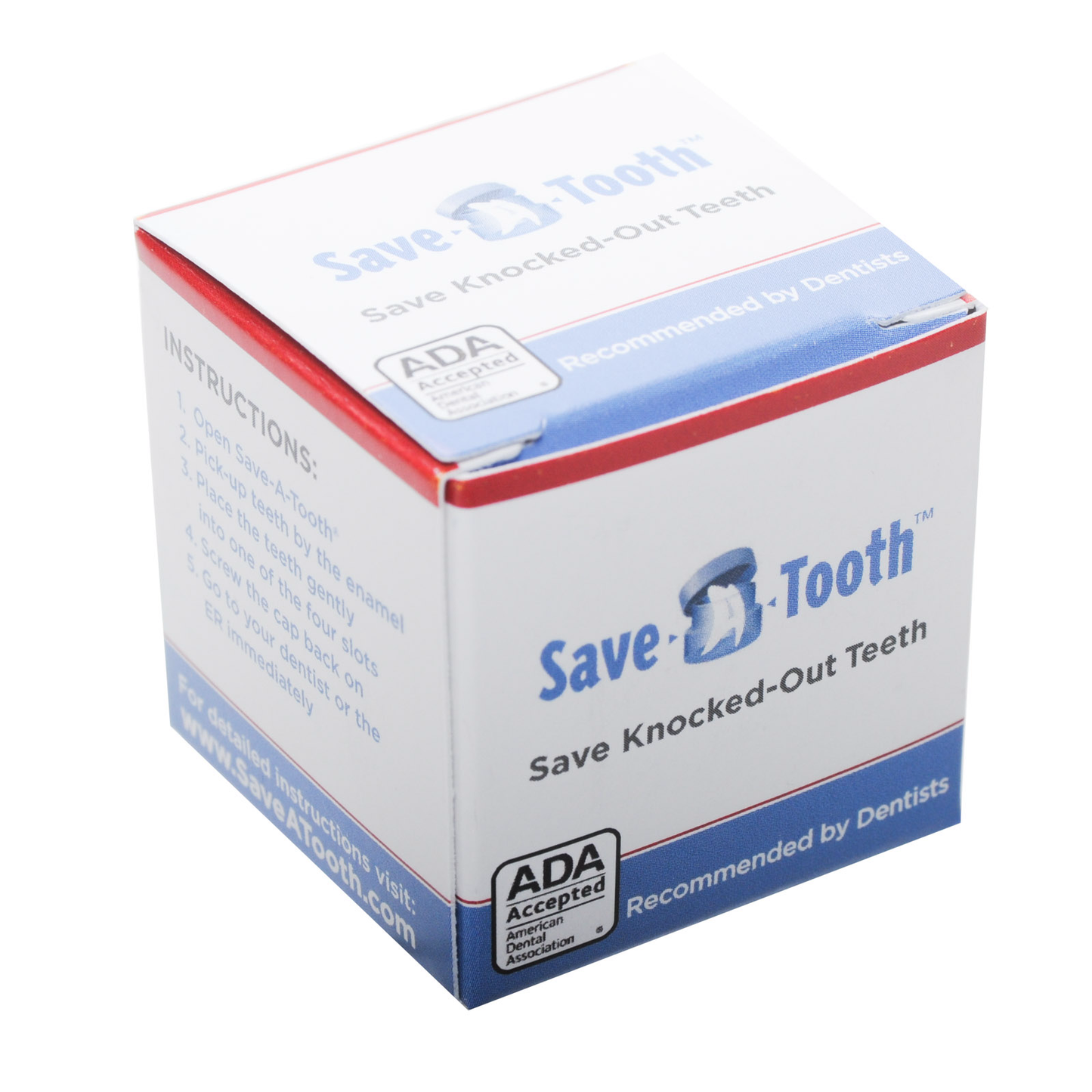 Newly redesigned Save-A-Tooth is now smaller, easier to transport and easier to use. The new redesigned Save A Tooth, features a basketless retention system allowing each knocked out tooth to get it's own protective slot. Also included in the re-design is a tamper evident safety ring that separates when opened, eliminating the accidental open.